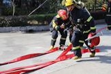 在清点完人数之后,应急处置组发现有人员尚未撤离火场,总指挥下达指令安排应急救援人员进入火场搜救,过程中培训了抬放担架的技巧。