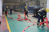 现场火情有所扩大,公司内部应急处置人员已经无法控制,总指挥杨文芳立刻让后勤通讯人员拨打119报警,应急处置人员和应急救援人员使用消防栓灭火。郑陆消防中队火速赶到事故现场进行救援。